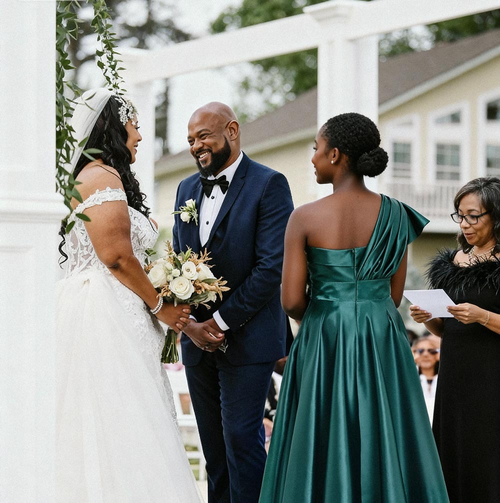 I'm really pleased with this bridesmaid dress. The color is exactly as pictured online, a beautiful soft Peacock. The satin material drapes nicely and doesn't wrinkle easily, which is a huge plus for events. I was a little worried about the one-shoulder style staying put all night, but it was surprisingly secure. Overall, a great value for the quality.