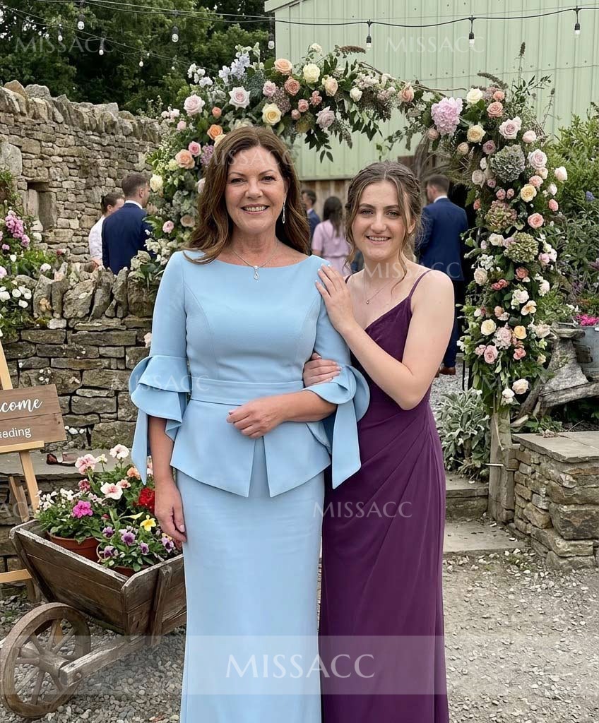 This dress was a hit! 🥰 The light blue color was perfect for the outdoor ceremony. The ruffled sleeves add a nice touch of drama without being overwhelming. I felt very confident wearing it.🥰