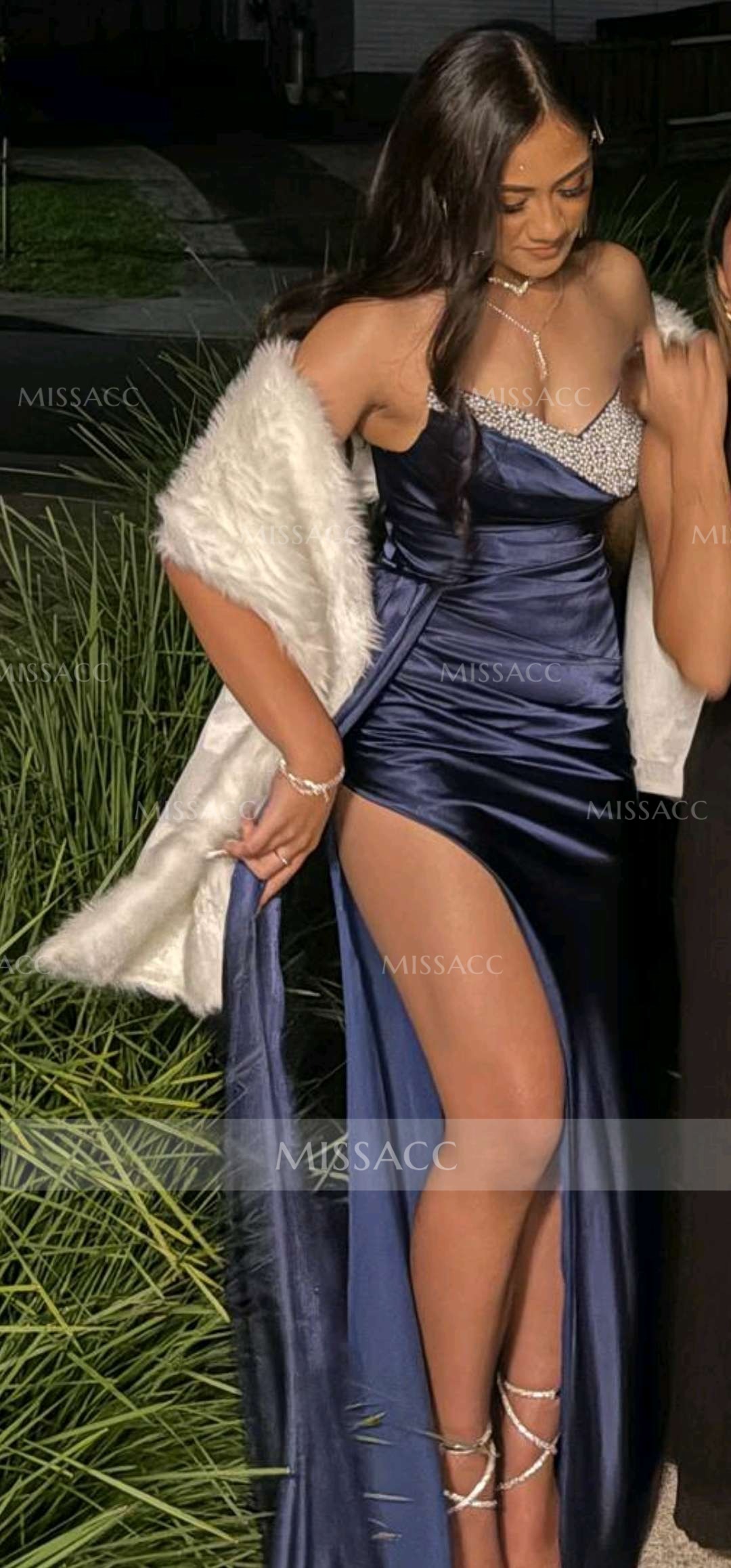 Show up in elegance in the prom dress. This garment offers a breathtaking sleeveless design that wonderfully frames your throat and shoulders. Sweep train provide a touch of grandeur to your every step, while the high slit makes it easy to move and adds a touch of charm to your outfit.