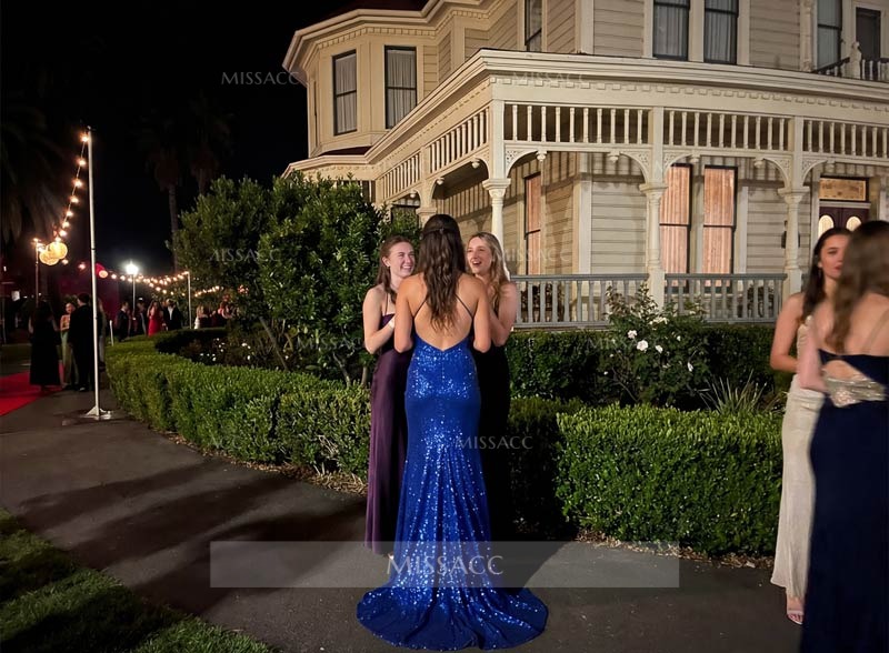 I've been looking for a dress that could make me stand out at the prom, and this one did just that. The color is vibrant and the sequins really pop under the lights. It's a bit tight around the waist, but I guess that's the style. Overall, a great choice for a memorable event.