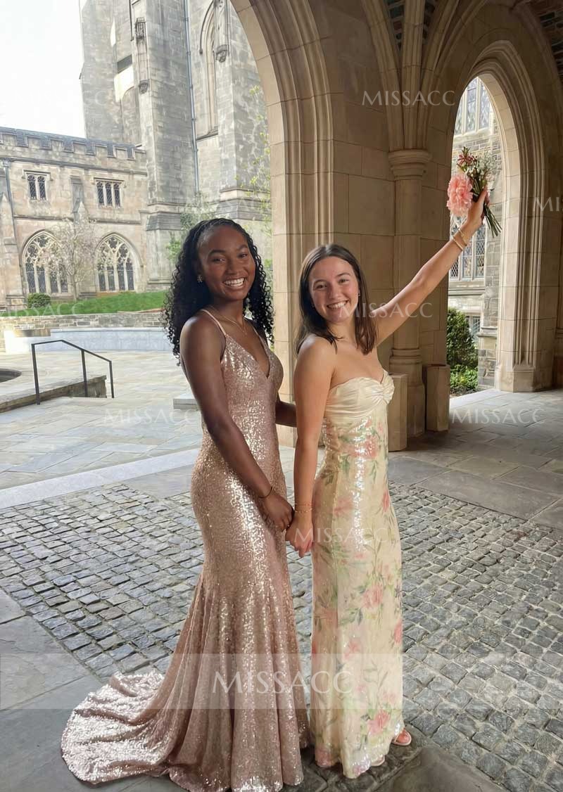 Stunning mermaid sequined prom dress with a flattering V-neck and sleeveless design. Perfect for evening events and special occasions.